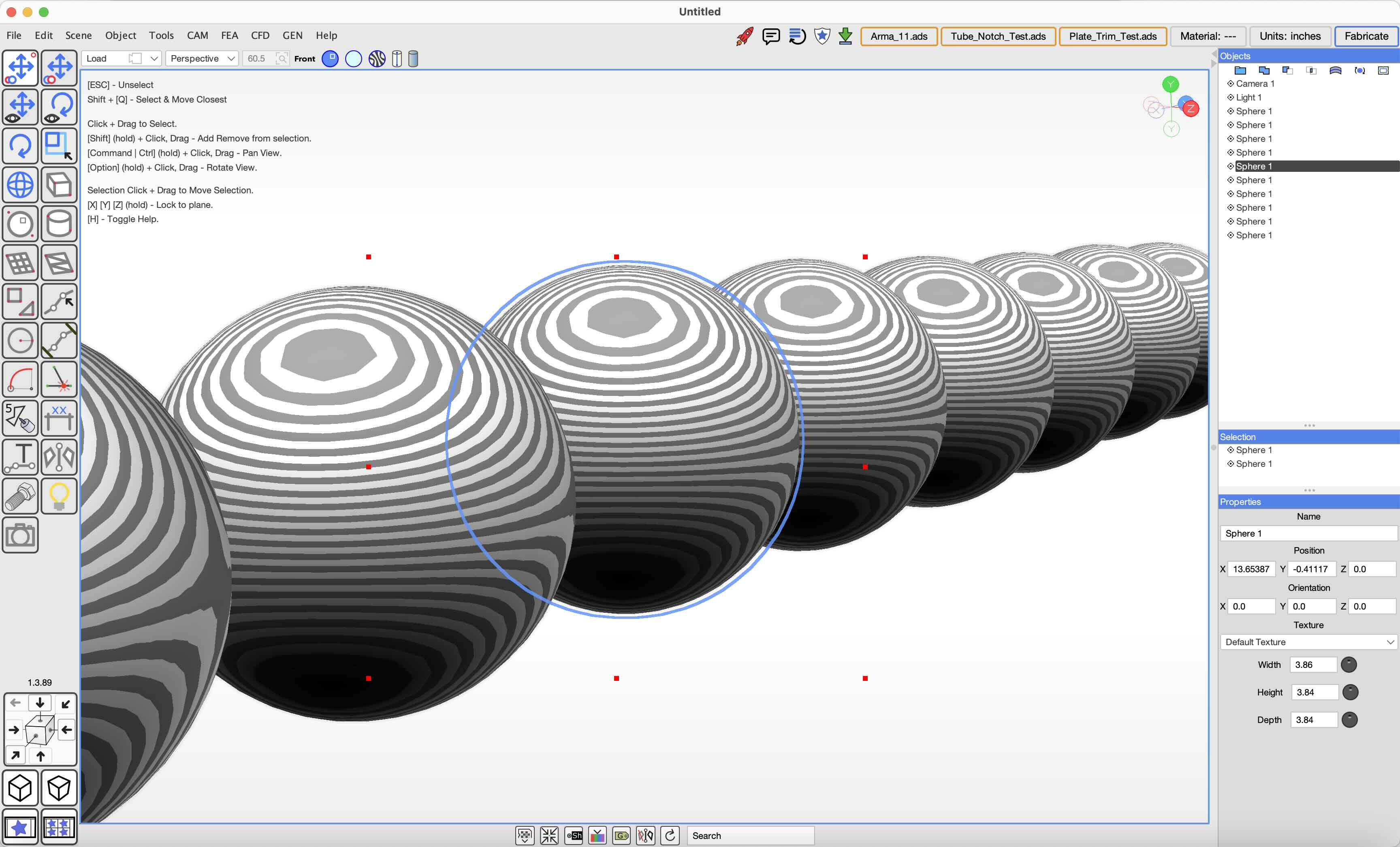 Adding fabrication tools for designers to have their products made by Arma. Added menu buttons for recent files, scene units and material selection. Fix bug in curve selection on closed curves, expanded seceltion bounds for easier selection of small objects.