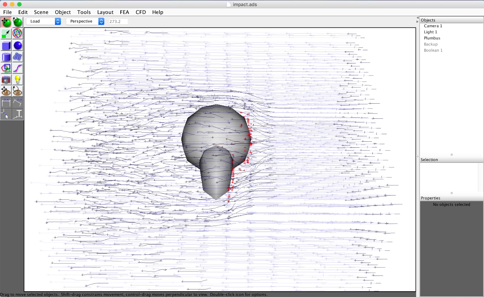 CFD (Compututational Fluid Dynamics) features allow for simulation and calculation of drag from airflow around 3D model objects.